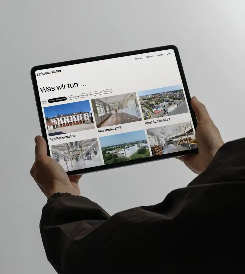Klarheit stand im Fokus des Projekts. Für die Karlsruher Fächer haben wir den Relaunch der Webseite betreut und dazu das Webdesign sowie die visuelle Sprache entwickelt. Es galt eine Gestaltung zu schaffen, die eher in den Hintergrund tritt und den Inhalte Raum gibt. Mit klarer, charakterstarker Typografie, kleiner Farbpalette und feinen Linien erfüllten wir den Wunsch nach mehr Modernität und gaben den Projekten der Gesellschaft eine Bühne.